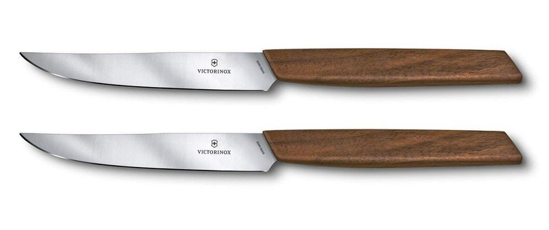 Razor-sharp steak knives with a modern design and a gorgeous wood handle.