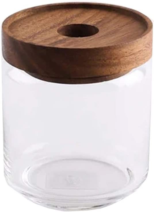 Beautifully shaped mouth-blown glass with Acacia wood lids. An invisible rubber seal keeps the contents airtight.