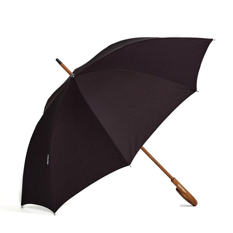 Wooden handle with a waxed cotton canopy supported by a fiberglass frame. Never has there been a more elegant yet cutting-edge umbrella.
